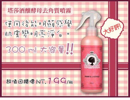 添加酒釀酵母防止肌膚老化、白皙、保濕、促進新陳代謝、抗氧作用,含有多種天然水果酵素使肌膚嫩白,溫和代謝臉部角質,液態分子小能深入角質層,進而清除、代謝老廢角質,易造成肌膚油脂的破壞;本產品使用方法簡單潔膚前先噴二下即可清除全臉老廢角質,使用後能明顯感覺肌膚變明亮白皙。